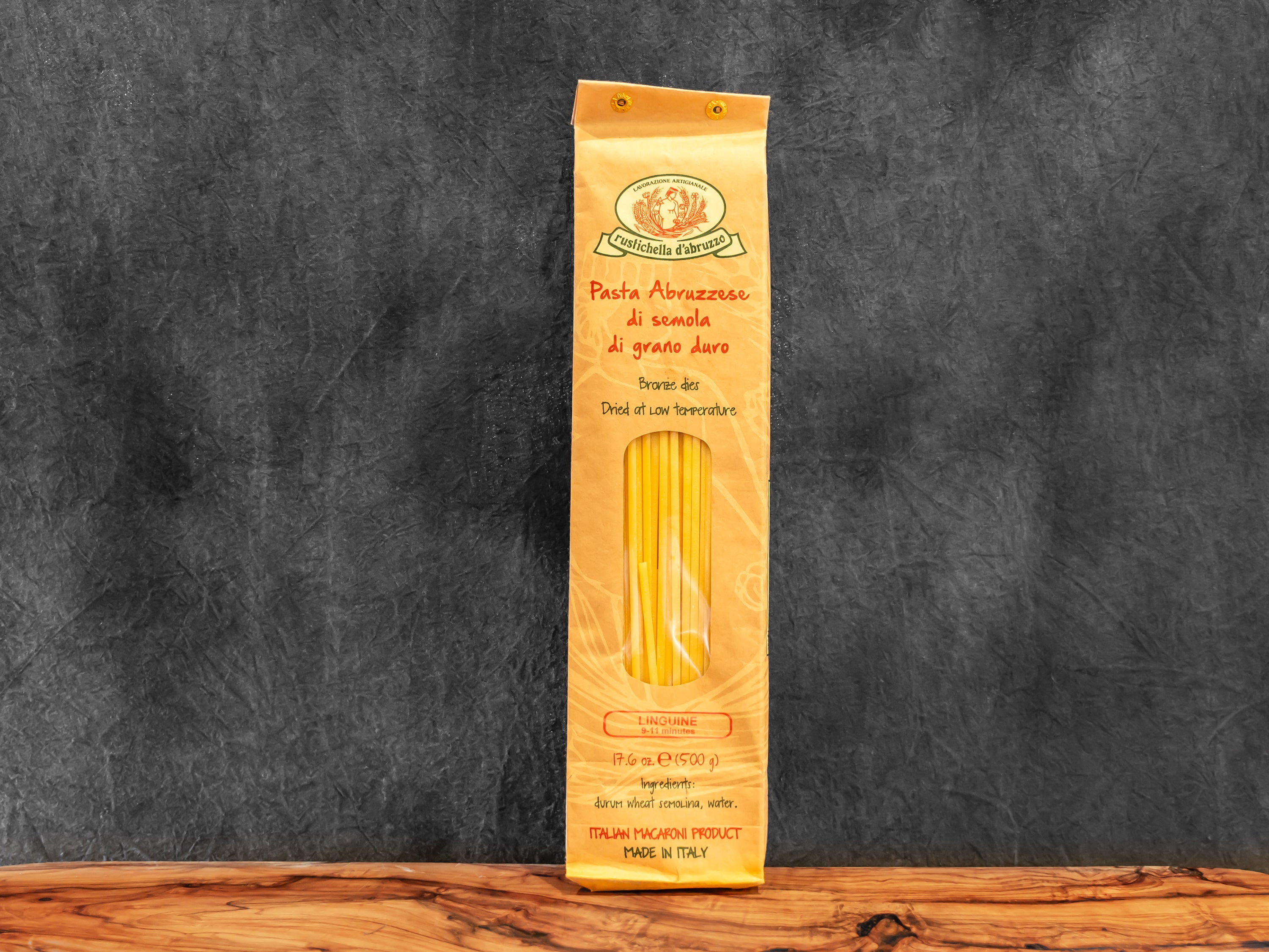 This isn't your average supermarket pasta. This is Rustichella d'Abruzzo Linguine from Olive This Olive That, a pasta experience crafted with passion and tradition, waiting to elevate your next culinary adventure.